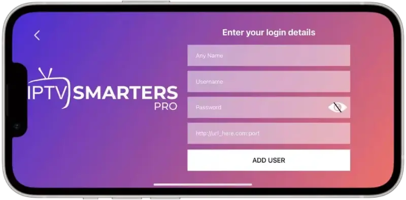 Step 4: Enter your playlist details (username, password and host URL) and click ADD USER.
