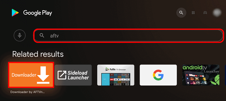 Step 2: Then select the Search option at the top right corner and search for “aftv” or “Downloader”